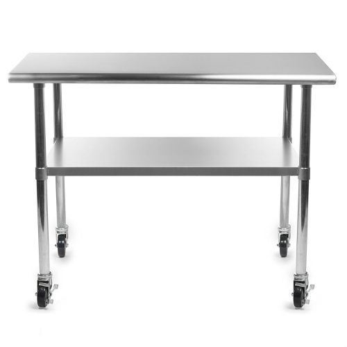 Stainless Steel 48 x 24-inch Kitchen Prep Table with Casters Stainless Steel 48 x 24-inch Kitchen Prep Table with Casters Stainless Steel 48 x 24-inch Kitchen Prep Table with Casters